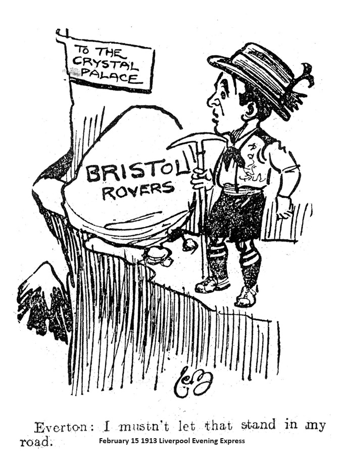 There is extraordinary enthusiasm at Bristol over the visit of Everton to the Rovers' ground. A correspondent says that the whole of the stand could have been sold at 5s. The ordinary shilling tickets, permitting the holders to get into the ground earlier than those who pay at the turnstiles are selling like hot cakes and crush-barriers will be provided. The supporters of the club have completely reviewed the position, and have recognised that with the overdraft of some hundreds still at the bank the management did the wise thing for the future benefit of the club in raising the prices. Special trainer will be run, from Liverpool. A number of tickets have been purchased for Mr. Charles Bullock's Saturday morning “diner” on the Great western and special facilities are also being offered in connection with the specials to be run by the L. and NW Railways Co.