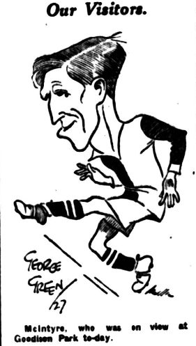 The left wing had an innings and like the rest of the side it then fell away from grace. At half back none did better than Hart, who had little to accomplish in staying the disappointing Guyan, but had plenty to do in helping his backs and providing passes to his wings. Virr was a trifle below par, and McDonald was a hero at full back, Kerr's punt of the ball imparting a curl that did not allow him full length clearances. Yet I would gave credit to Kerr and McDonald, the latter most noticeably. Considering the chances Hull made by their swift-t0-part Second Division rushes Hardy had another easy day; there was a time when he dropped the ball on the goal line, and another occasion when he threw away and found the ball offered to a Hull forward. However, he could not be blamed for the goal's scored against him, and some of his outward runs were well timed. How, then can one explain Everton's failure to win after being two goals head. Maybe it was that tired feeling of which we read; may be it was lack of confidence for when they were a goal in front they were nerve ridden so soon as Hull moved off. Teams : - Everton: - Hardy goal, McDonald and Kerr backs, Rooney, Hart (captain), and Virr half-backs Irvine, Bain, Dean, Dominy and Troup, forwards. Hull City: - Maddison, goal, McGee, and Bell, backs, Swan, Dixon, and Sullivan, half-backs, Martin, Scott, Guyan, McLaughlin and Taylor, forwards. Referee Mr. Woods.