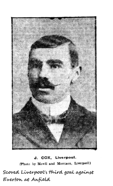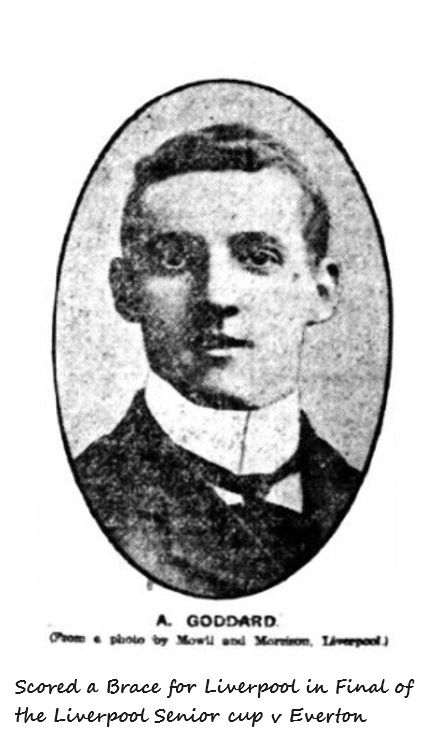 After fast and even play Cox dashed off on his own, and beating Crelly for speed scored again for Liverpool amidst tremendous enthusiasm when only about five minutes remained for play. Liverpool were still the better team, and Goddard with a grand shot scored again, putting Liverpool ahead by four goals to one. Liverpool thus once more gained the cup. Final.—Liverpool 4, Everton 1.