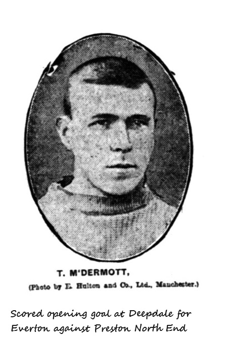 In view of the close running for championship honours, the meeting between Everton and Preston North End at Deepdale was looked forward to with more than ordinary interest. The fixture attracted a large gathering, many having made the journey from Liverpool, and though the conditions were not altogether favourable to a high class exposition of the game, it’s varying stages were followed with the keenest interest. The ground was frost-bound, and it was but natural that precautionary methods should prevail. It was some time ere the players moved about with any degree of confidence. Nevertheless there was always sufficient interest in the proceedings to render the game most attractive. At the outset the home side went off at a great pace, and it was evident that the spectators were in for a good afternoon’s sport. Severe pressure was brought to bear upon the Everton defence and it was not until the visiting forwards settled down to a comfortable football that they gave any indication of being able to hold their own. Then followed some really clever play on both sides and a fine shot from Settle when within a few yards of goal brought about a corner kick, from which McDermott scored. Subsequently play in the first half was all in favour of Everton, but on the general run of the game in this moiety there was little to choose between the teams. The second portion was heatedly and earnestly contested. The home side put forward tremendous efforts to reduce the lead, and their persistency was rewarded towards the close of the game, when they took full advantage of a free kick close in and equalised. Neither of the goals scored by the sides was of exceptional merit, indeed they were rather of the lucky order. Little exception could be taken to the play of the forwards in midfield work, but when it came to a master of shooting their efforts were generally of the most elementary fashion. From an Everton point of view there was much speculation as to how McDermott would fare as the pivot of the attack. It may at once he stated that he gave a very creditable display in a position that is no sinecure. It was of course too much to expect that he should distribute the work and keep his line together with the efficiency of seasoned centre forward; still he attained a good standard and his cleverness in controlling the ball often enabled him to avoid opponents and flash the leather out to his wing men. In this matter he was fairly accurate and much of the success of Hardman and Sharp resulted from well-placed passes from the centre. While the quality of forward play was scarcely all that could be desired, there could be no getting away from the fact that the Everton quintet were the cleverer exponents. There was, however, no finality to their movement for there was scarcely a shot of exceptional merit sent in to the Preston custodian. In fact, Hardman was the only player in the line who seriously tested McBride and much of the really serious work of the quintet in working the ball down to within shooting range was short of its attractiveness by crude finishing touches. Settle was rarely prominent, and Rankin was not very successful as inside right to Sharp. The last named put in several dashing runs along the wing, and occasionally finished up with well-directed centres, but still the right wing play was not one of the strong points. The North End forwards had more chances of scoring than their opponents. They were fairly well handled by Turnbull in the centre, and many were the smart flashes along the right wing that caused the Everton defender much anxiety. At outside right Bond showed much cleverness in outwitting an opponent, and would probably have severed on more than one occasion had be not attempted to get too close in to goal. Bell, the ex-Evertonian played a very useful game at inside left, but his partner Catterall, who played his first game at home was not a success and much of the veteran’s good work was allowed to go abegging. That the forwards should have been allowed little quarter in the matter of shooting testifies ably to the abilities of the respective half-backs. The Everton trio played a good game, especially Taylor, who was connected in the breaking up of almost every attack on the part of the North Enders. His tackling was clean his passing accurate, and his kicking when under pressure strong and well directed, and it was unfortunate that the point secured by Preston was the outcome of the only slip he made during the courses of the game in unfairly charging an opponent from a throw-in. Ashworth was not a great success, but at the other end of the line Abbott was in rare trim, used this well for his side as he had a difficult customer to deal with in Bond. Hunter, the North End centre half displayed plenty of resource and the line as a whole played above the average standard. At full back the brothers Balmer were more reliable than Derbyshire and Rodway. The youngster Balmer was the most finished exponent of back play. His ready tackling and timely clearances caught the eye of the big crowd, while, in addition he was frequently in evidence with smart ground passes to Hardman. His brother kicked powerfully and tackled fearlessly, but when the home side were swooping down he was inclined to get too near goal, to the discomfiture of Roose, who on one occasion saved in dexterous fashion after the right back had missed his kick a couple of yards from goal. Rodway played a capital full back game, and both custodians showed good judgement in dealing with what few shots came their way. McBride was tested with a difficult ball from Hardman after a splendid run down by Sharp in the closing stages of play, and few keepers could have gathered and cleared with better judgement. Summing up the game, though not brilliant, was always interesting, and a division of honours was a fairly accurate reflex of the run of the play.
