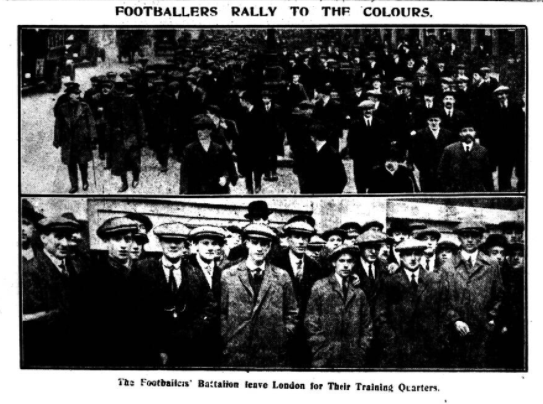 Lord Derby thinks it will be of interest to the public to know the names of the players from the Everton and Liverpool Football Clubs who set such a good example promising to join the Army when called upon to do so. The names are follow: Everton. —H. Makepeace, Lancelot Johnston, Robert Parker, James Roy, Samuel Chedgzoy, Frank Mitchell. Thomas Fern, T. A. Nuttall, Tom Houston, James H. Gait, Lewis P. Weller. Liverpool.—F F. Grayer , J Dawson, W. Wadswarth,. M'Dougail, A. Metcalf, G. Patterson, W. Lacey, and Elisha Scott.