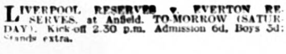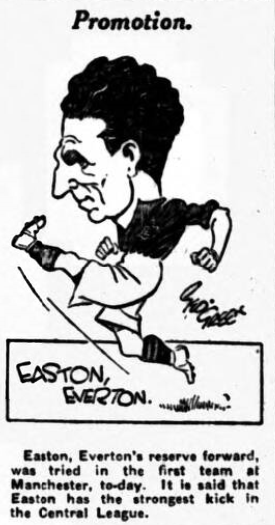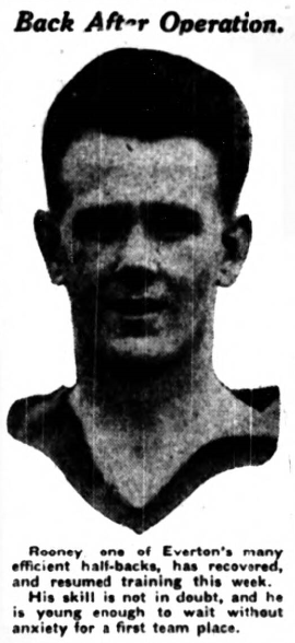 Tomorrow Everton tackle Manchester City with a side much removed from that which lost at home to what seemed a great side. Manchester City did nothing wrong that day; to-morrow Everton, with earnest young men trying to oust seniors, will put forward strong endeavor. Manchester City is not one of Everton’s best places, but at least the forward line should do some damage against the City backs, whom I do not fancy with the ball a little bit heavy Everton’s experiement is one of the biggest they have attempted. We shall watch this side with unexampled interest; Everton; Davies; Cresswell, O’Donnell; Griffiths, Hart, Rooney; Critchley, Forshaw, Easton, Troup.