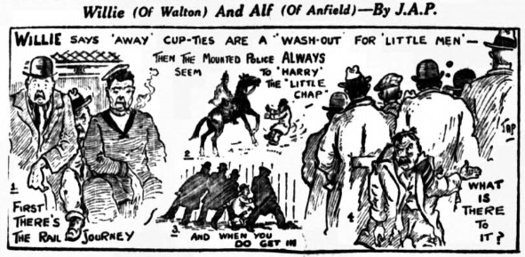 Boy’s football is becoming a greater draw than some senior football. In Liverpool yesterday 7,000 people paid to see boys’ matches at the Liverpool and Everton ground. The 4,000 at Goodison must have been sadly disappointed at seeing the city team go out of the School’s Sheild third round tie to Manchester with so little chance of winning. The result-Manchester won 3-1.