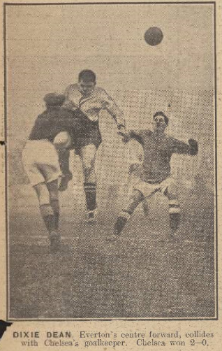 In fine weather, Goodison Park, before 40,000 spectators. Everton took the lead after 11 minutes through Dean. Whitehouse missed a fine chance of equalising. Dunn added a sccond goal in 30 minutes, and Dean a third and fourth in the last four minutes of the first half. Everton started the second half in storm
