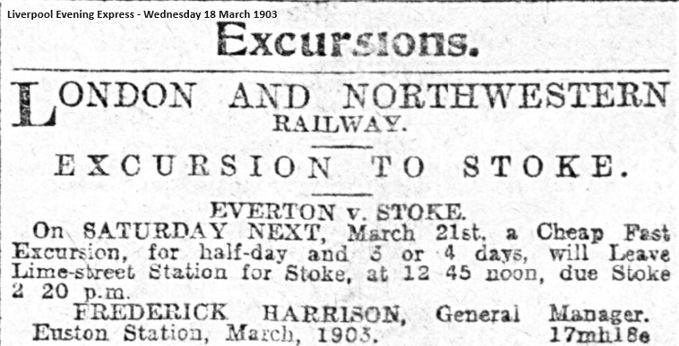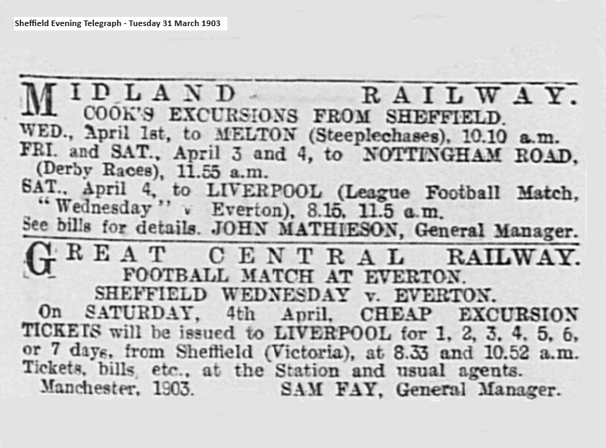 For the third round of the English Cup tie, Everton v. Millwall and Aston Villa v. Tottenham Hotspur, on Saturday, Messrs. Thomas Cook and Son are running a cheap fast excursion to London by the Midland Railway, leaving Liverpool (Central) at 11 40 p.m. on Friday, with facilities to return on Saturday night, or Sunday, Monday, Thursday, or Saturday following.