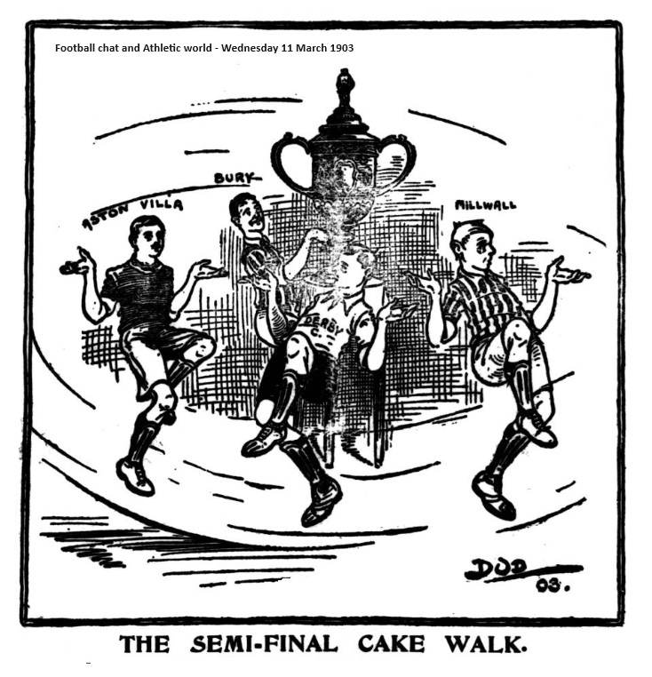 Derby County seem content to either rise or fall by the Cup competition. They still had a chance of gaining the championship; but this they sacrificed by their display against Everton. To have men injured now would seriously interfere with their chances of success at the Crystal Palace, but they will have to be careful in this sort of thing. On Saturday they were nothing like so good a team as Everton who should have won by more than a single goal.