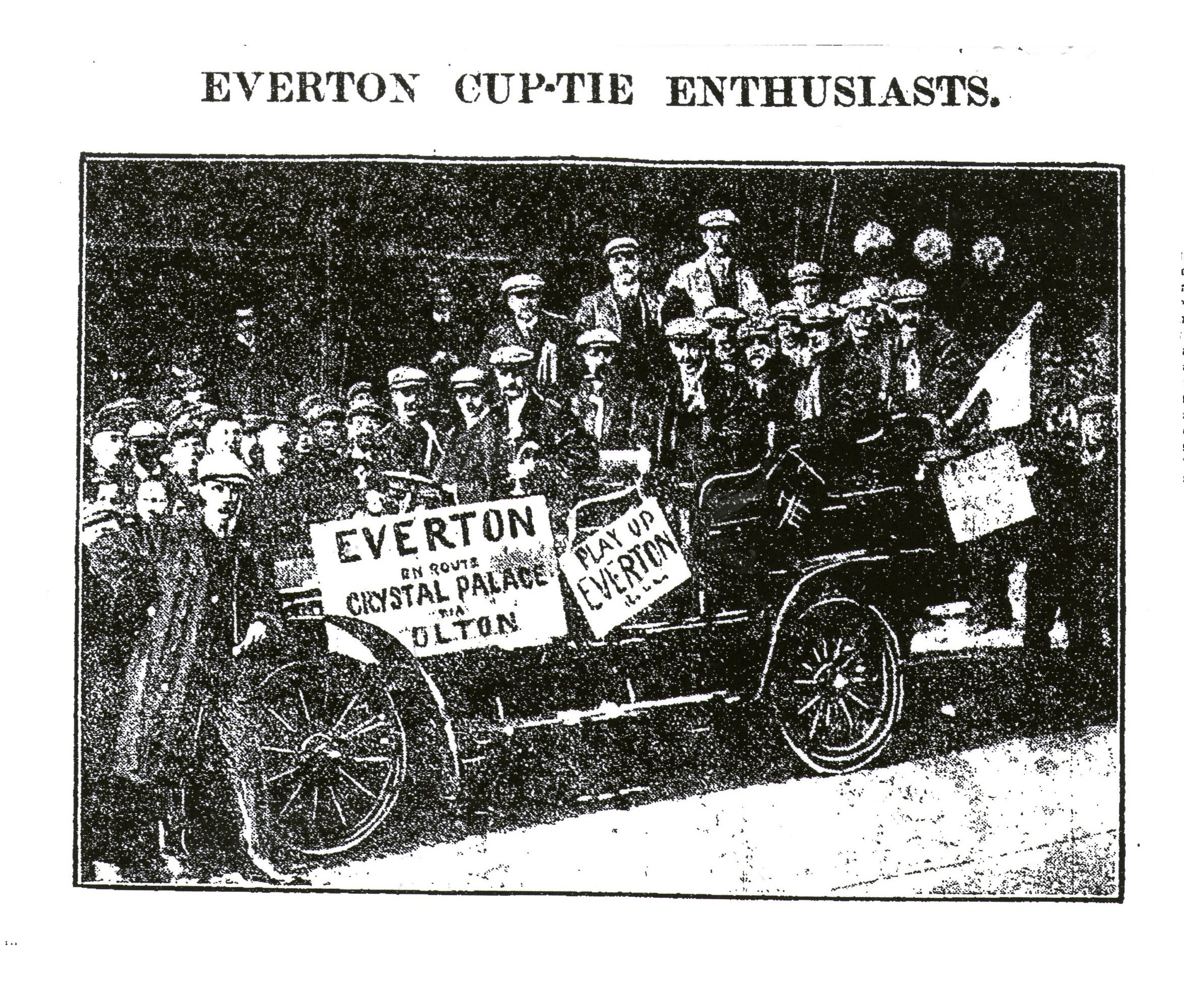 Are we to pass through an Evertonian era of Cup triumphs? That is the question which present itself when we see this famous Lancashire eleven again bound for the plains of the Palace at Sydenham in the South. For three years in succession the team have been in the last four combatants and this spring, as twelve months ago, they have reached the scene which will end all this argue. Everton have bravely for themselves and for the industrial duchy. They have an ambition to restore that cup which recent was place in the centre of the long table which graces the cak-panelled room of the Everton directorates. Everything at Goodison Park is palatial – and the most potential article of virtue which could grace their board is the one Cup that cheers and the masses with enthusiasm. After possessing my soul in patience which required one hour and twenty minutes to encompass the fourteen miles between Manchester and Bolton, I made tracks for Burnden Park. There flitted past me in the sunshine a red motor-car – a kind of char-a-banc, I saw it the other day in Liverpool. The prophet of the party had hung a label out behind. In blue letters on a white ground, I read; “Everton for the Crystal Palace via Bolton.” I wonder what the fanatics thought when they heard that “Jock” Taylor had an attack of catarrh of the stomach and had not broken his fast for 48 hours. Even so, Taylor was fast enough and strong enough to take his place, and the rivals were constituted exactly as in their recent Cup-ties.