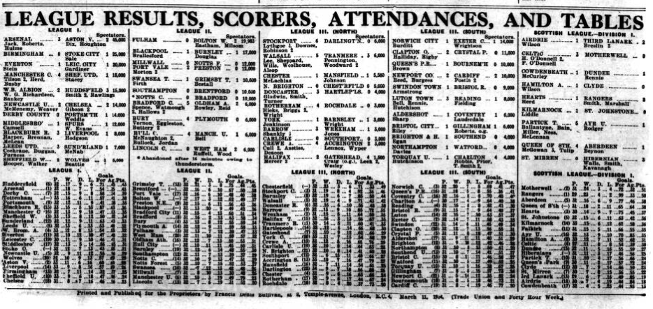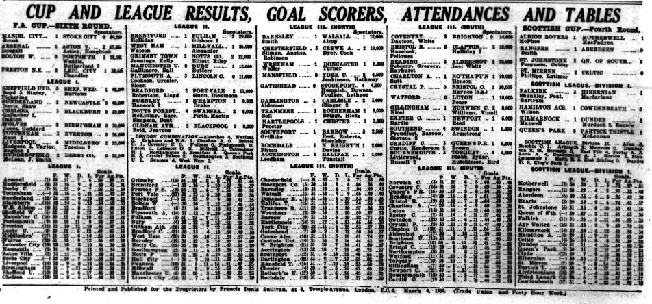March 10, 1934. Liverpool Football Echo