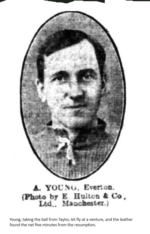 Everton;- Kitchen; Balmer, Crelly; Wolstenholme, Booth (Captain), Abbott; Sharp, Taylor, Young, Settle, Corrin.