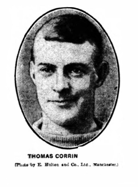 Everton undoubtedly showed to most advantage in their half-back division, and the really excellent work of this trio laid the way for the ultimate victory. Booth was particularly prominent, his tackling and placing being grand, and he was well backed up by Wolstenholme and Abbott, each of whom gave a display reminiscent of their finest form.  These unceasingly worrying half-backs kept well in touch with their forwards, and were always placing the ball ahead to the best possible advantage, so that the members of the front line were afforded every opportunity of making headway.  These latter were more effective than for some weeks past, and the inclusion of Taylor was a decided success.  The inside right infused that dash into the forward movements which has been lacking in recent games, and he furnished Sharp with frequent openings, which the extreme winger scarcely utilized to the extent one could have desired.  Young was fairly successful in the centre, and his goal was a clever effort, but the best combined work was witnessed on the left wing.  Settle plied Corrin most judiciously, and the latter made the most of his chances.  His centres were always dangerous, and there can be no mistaking his position in a forward line.  At full-back Balmer played a splendid game, whilst Crelley only paled by comparison, and Kitchen was equal to all that came his way, though owing to the excellent work of the men in front of him he was seldom fully extended.