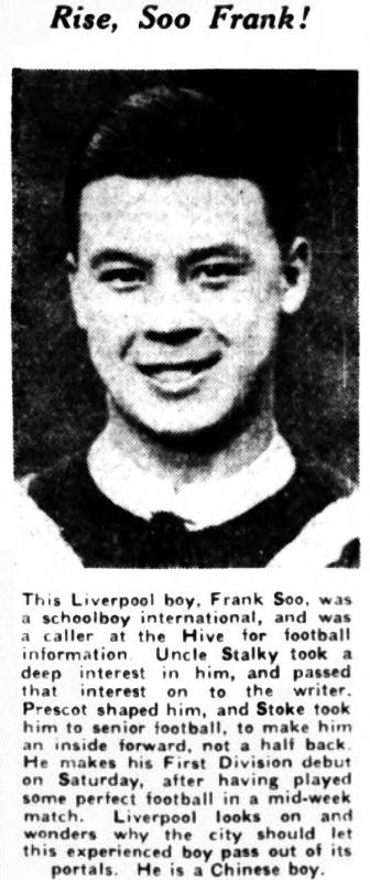 Everton had been very uneven. Gee, who did best near the finish, was not sure with his delivery of the ball; others had so little show that the Everton side, as a side, cannot yet be called convincing. Cunliffe strikes me as better at centre than inside forward, but at least he adds his shooting boots to the day's work, and his opening drive led to the corner which White turned to a goal. Actually White by his latest display has proved to me that he is a natural footballer anywhere; his efforts in the first half were superb; he had little support yet everything he did bore a master mind and football brain; it was great football in a bad setting, and one had to look hard into his individual play to realize how good was his play. Stoke half backs started moderately and finished well. The rousing right half back has the fault of the men in front of him; they are inclined to hold the ball too long, but it must be said that most of their attacks came from the right wing, albeit McArdle, a reserve man, did well when given the chance, and is liable to do the Hooper trick of getting goals from the wing as he is so good a header of the ball. The game was not brilliant by any means, but it was hard and relentless, and its curiosity kept one on tenterhooks. It makes Stoke's need for driving force near goal the more imperative, and it makes Everton's first away success by a display that would not win many more matches of a similar kind at any other ground. I am not belittling Everton; I am appraising the victory for its worth and trying to show that it will not do to depend upon such form for future events in away games or cup-ties. Dixie Dean was a looker on, and Dunn was also with the side. Dunn's boy and Lou Weller's boy showed their joy just as they did when I "reported” on their grand stand case earlier in the season. Weller, the former Everton stalwart, was in his homeland, but Sir Francis Joseph, chairman of the Stoke club, was among former “townies," and Mr. Chairman Cuff showed him a cigarette ease to which Sir Francis subscribed thirty years ago, when Mr. William Watmough and Mr. A. E. Morton sponsored the gift scheme. Sir Francis spoke kindly of Everton at the dinner over which he presided, and gave the directors mementoes of their visit to Stoke. Quite a happy party!