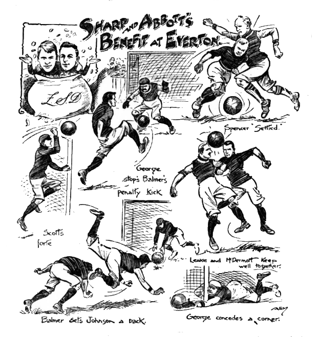 Everton.- Scott, goal; Balmer and Crelly, backs; S.B. Ashworth, Taylor, and Makepeace, half-backs; Sharp, McDermott, Young, Settle, and H.P. Hardman, forwards.