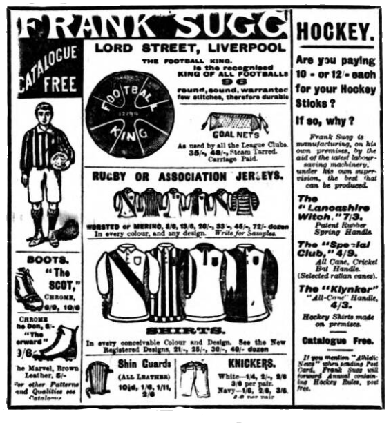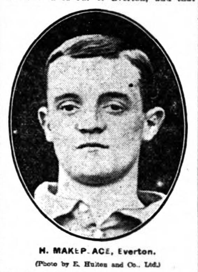 Bad weather was all against a big crowd at Goodison Park to witness this encounter, but, there were a couple of thousand people present at the start. Both teams quickly got to work, and Pearson at once exerted pressure on the right, where Smith soon found an opening and defeated Scott after three minutes’ play. The play then became of a determined nature for another fifteen minutes until the Everton right fairly beat the Preston half line. Clever work between Young, Rankin, and Settle resulted in the latter equalising, McBride being helpless to oppose.