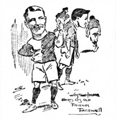 At the age of 17 he became a member of the "Village" senior team, and at 13 assisted in the winning of the Scottish cup. In so doing he displayed so commendable form that shortly afterwards the Scottish Association selected him to do battle on their behalf against both Ireland and Wales. Twelve months later the latter honour was repeated, but next season the S.F. Association went a step further, and not only conferred non him a third Welsh cap, but English one as well. in season 1887-88 he again occupied a place in the team against England, but a few months thereafter he shook the dust of his native country off his feet and crossed the Tweed. Newcastle was his destination, but after a short season amongst the Northumbarians he transfered his services to preston North End and in the Deepdale team he figured for a couple of terms at right back. In season 1891-92 he again moved his camp, migrating to Liverpool to the Everton Clubs. Leaving Everton along with John Hillman, the pair found their way to Dundee. While here Kelso received international distinction. This was against Ireland in 1898, and it is remarkable that first cap should have been received no fewer than 13 years previously. he played twice against England, three times against Wales, and twice against Ireland, and also gained a League cap against Ireland. On leaving Dundee, Kelso went to Bristol, and is now once more home in the county of his birth, still able to kick leather. As a player Kelso was of the reboust order, but contrary to what is usual with this class he was possessed of great skill, and it took a very clever forward indeed to get the better of him. While with Everton he became a full back, and in this position he seemed almost to be a football magnet. I have never seen a man who could play a back game, and a good one too, in less ground. In his latter days he was a wonderful sight as he stood up to the atatcks of the forwards. He old speed had deserted him, both knees were bandaged, and even his ankles were held together with specially constructed leather straps, but his pluck was indomitable, and his skill and experience unimpaired. These carried him through.
