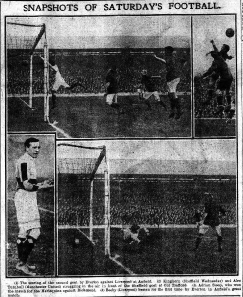 Once more we are in pleasant anticipation of another memorable battle between the local rivals –Everton and Liverpool. The influence these games have in local enthusiasts is remarkable, and perhaps in no provincial center is rivalry more keen. Cup-tie football cannot outshine the importance of a meeting of Reds and Blues. High or low, strong or feeble as the respective rivals may be, interest is just the same, and, though Everton have since 1894 held the whip hand, Liverpool are encouraged by successes in recent years. Last season they surprised not a few by a wonderful victory at Goodison Park. Now both clubs can claim any brilliant work so far as the campaign has progressed, so form as guide, and it seldom is –is unreliable. The results hang in the balance. Everton are at a disadvantage forward, for although Liverpool's quintette has not risen to the form which marked them dangerous last season, they have yet, displayed a more active desire to find the net. But, whatever, the difference forward it is counter-balanced by the brilliance of the Everton defence. The doubt is –are the Liverpool forwards, capable of penetrating Everton's strong defence, rise superior to the experimental line opposed. It will be interesting to not, the result of Everton's interest experiment forward line, whereby Freeman resumes at centre, and Gourlay retains his place in the team, but partners Berry instead of Turner. A young moving inside left. I fancy a great deal depends on Freeman, who if he touches his old form, will act like a tonic on his fellow forwards. The team is otherwise unchanged.