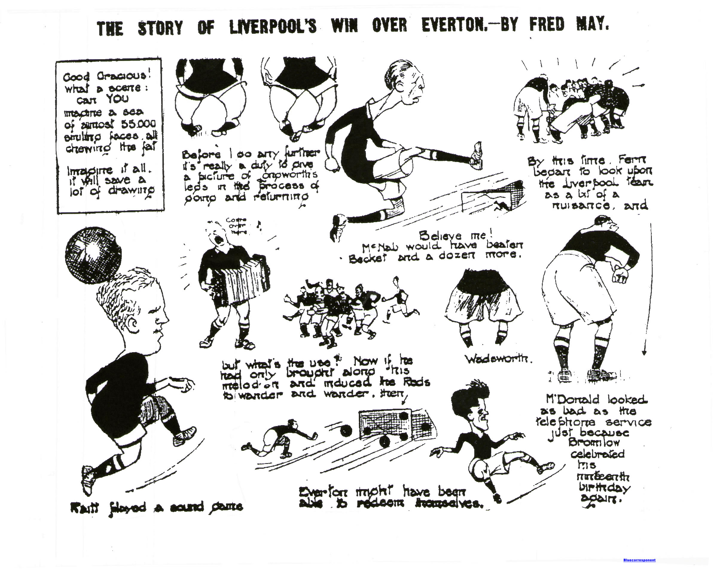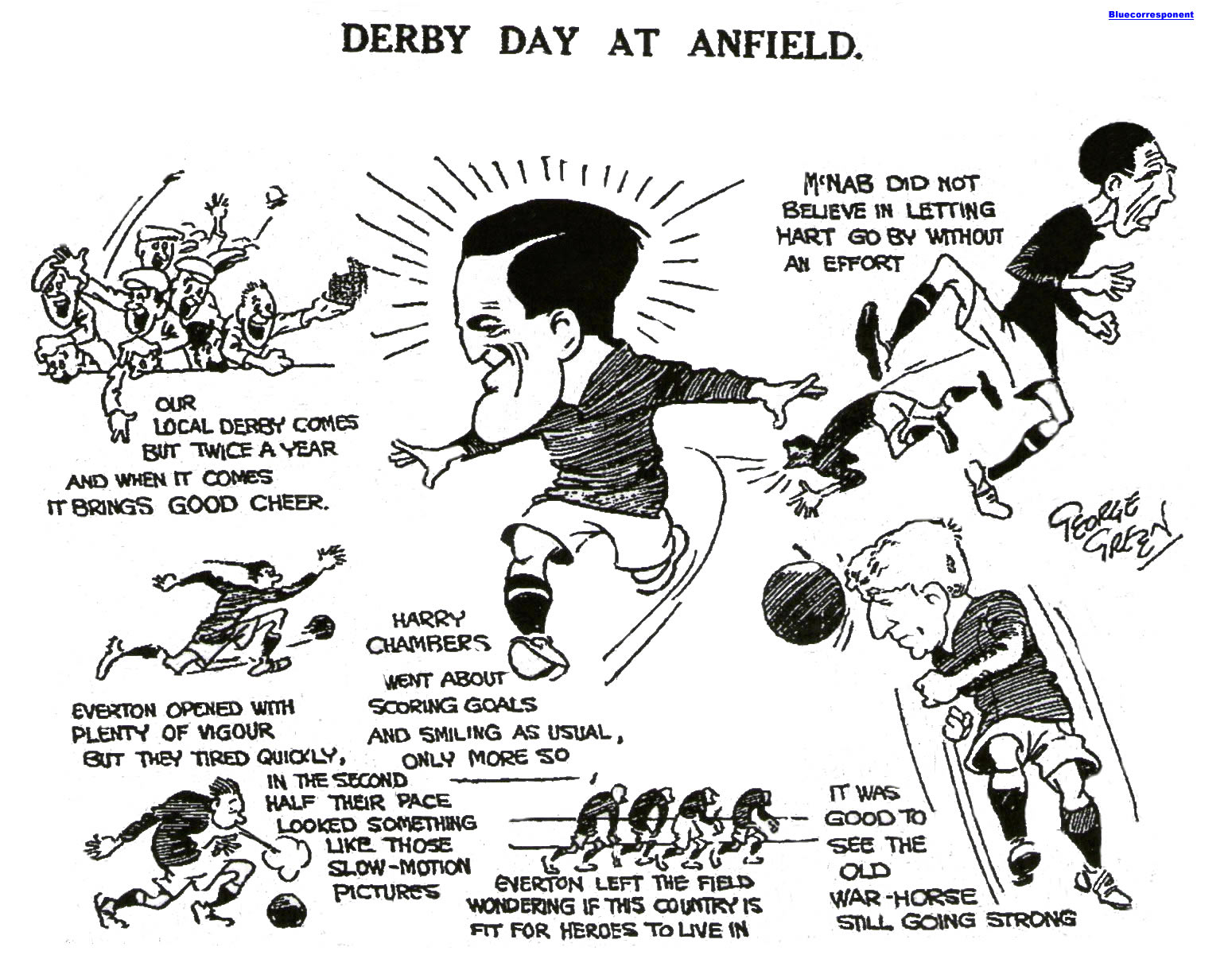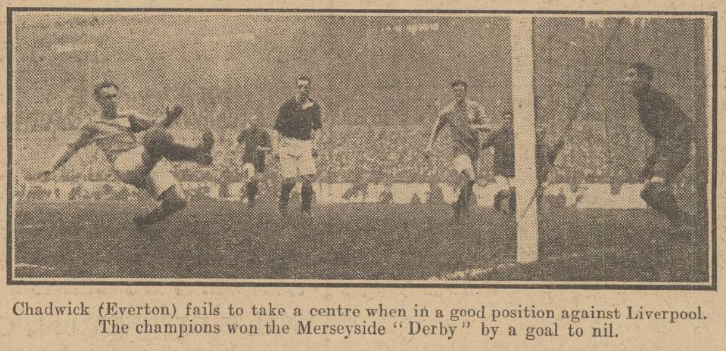 There is every prospect of some keen struggle, of course on the season's form the event looks good thing for the Reds, but in these local “Derby's” form counts for little. The days, however, have gone by when the old jibe that Liverpool only had to see a Blue shirt at Anfield to be mesmerised into inactivity. That twenty year spell was broken in 1920-21, and on their showing on their own sward this season the League champions will indeed fall from their pedestal if they allow the spell to be recast today.