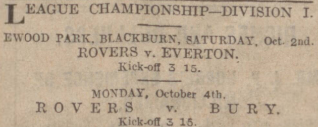 Everton are to visit Ewood Park to oppose Blackburn Rovers. A team which has not fulfilled its early promise, but which has done much better than later, though Rovers were beaten 4-0 by Leicester on Saturday, Everton are trying Dominy at centre-forward, with Woodhouse at inside left.