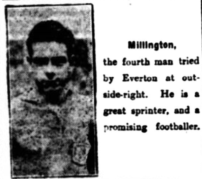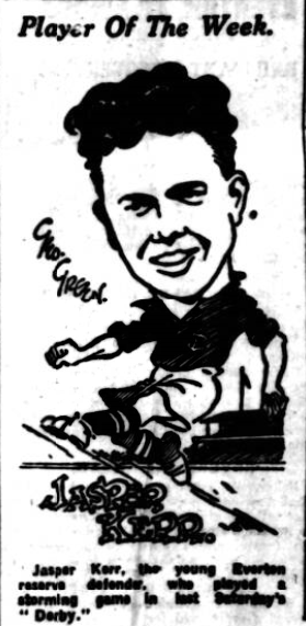 I shall be obliged if you will kindly grant me a space in your interesting columns, in which to congratulate the Everton directors for the recent signing of a local, in J. Tyson (Says “Supporter”). I went to the reserve match, especially to see how this youth shaped.  I think Everton have secured a very smart substitute for Dixie; just the type that is needed in Everton’s ranks; thrustful, very smart with his head, a remarkable turn of speed, and he possesses a very powerful shot, and most important of all he is not afraid to follow up, in fact, he nodded a very fine goal by this method.  I should like to hear through your columns what other supporters of the old club (who saw the youth play) think of him.  Also many congratulations to the three teams on having joined the Mustard Club!  The Currs, of Orrell, have also continued to play up to their promise.