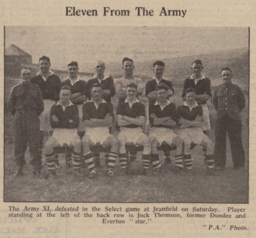 ” Dixie Dean, former. Everton and England centre forward, will captain the Army XI. opposing Bristol City, at Warminster, Wilts, on Saturday, Bristol City have arranged a return match with Dean’s side at Bristol, on Oct. 25. Which goes to a professional footballer except playing in the F.A Cup final. He played centre forward for Everton, Liverpool and England. Among his most treasured trophies is the football which was