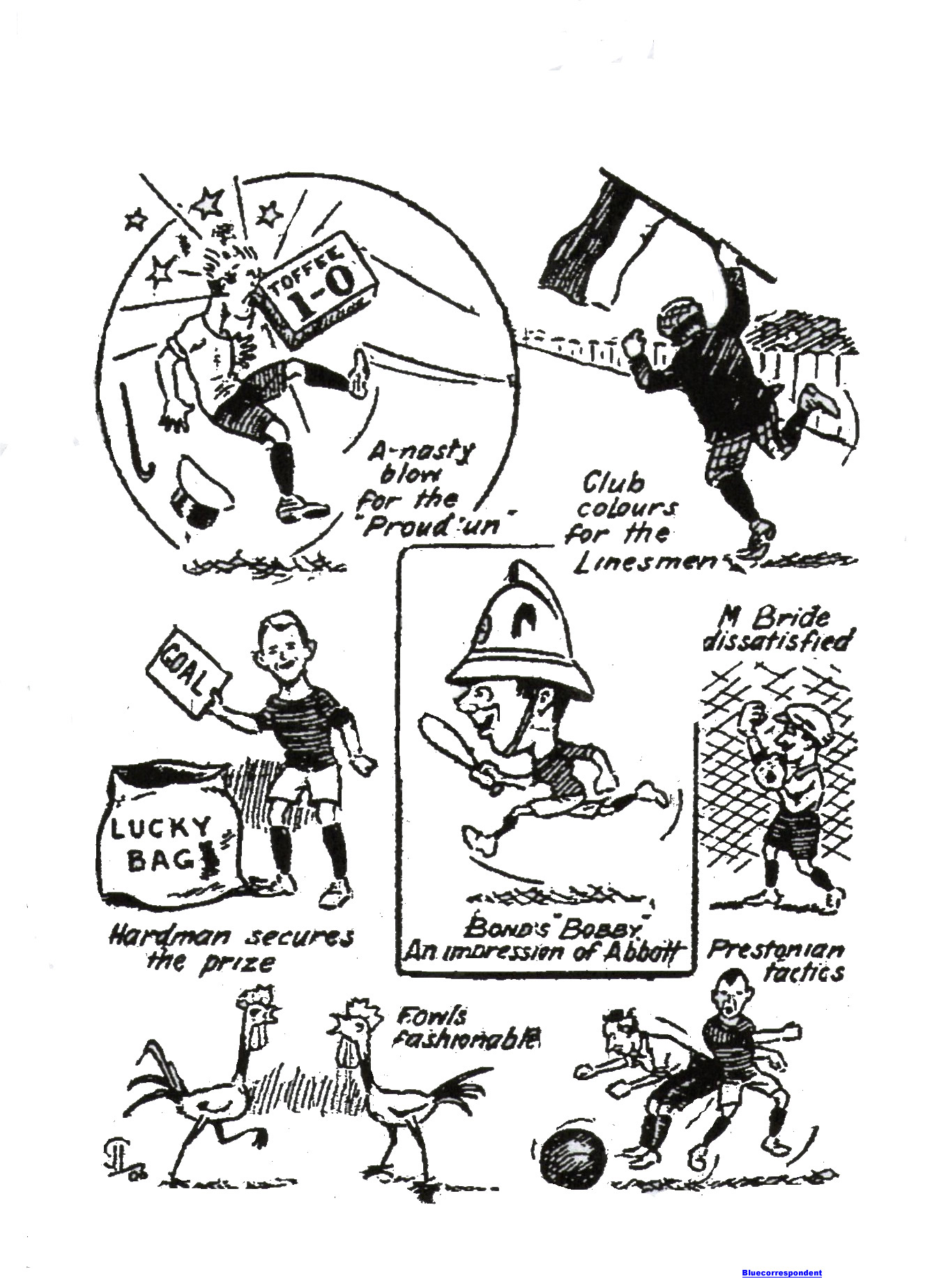 North End kicked off, and Stevenson checked a forward movement on the visitors’ right. Play hovered round the Blues’ citadel, and Butler was offside when he received an accurate pass. Hill and Stevenson got in each other’s way, and Pearson shot over from easy distance. Then the Blues advanced, and Donnachie out in a warm handful for Taylor to fist clear. After midfield play, Chadwick made a terrible hash of a favourable opening, and then Graham passed the leather forward for Dorward to put in a really brilliant attempt, which Taylor cleverly manipulated. The Blues’ forwards persisted and this time Butler did the trick with a beauty, which beat the Pearson custodian all the way. Play during the next few minutes favoured the Proud ‘Uns, and Preston just missed converting across from the left wing. Sloan next cleared a long ground shot from McCall. The subsequent play was distinctly favourable to the homesters, and on one occasion Dorward looked all over a scorer, but in attempting to dribble the leather into the goal he encountered Taylor, who dispossessed him. Donnachie got in a clever run and centre, which Wilson failed to turn to account. At this stage it was plainly obvious that the Blues were having by far the best of the argument, and Dorward was unfortunate in not getting through the Preston defence after a praiseworthy individual effort. Next followed a bully in the Preston goal, and Taylor fell with the ball beneath him, while he was surrounded by was surrounded by a cluster of opponents all eager to touch the leather into the net. The custodian, however, emerged triumphantly from the ordeal. During the next few minutes the Preston defence had a particularly anxious time. Each of the five Everton forwards made attempts to lower the proud ‘uns colours, and colours, and Taylor was lucky to escape defeat on more than one occasion. At the interval drew near the visitors made good efforts to draw level, and Danson put in a fine cross shot, which Ashton captured but Sloan anticipated the latter’s intentions, and stepping out nearly caught the ball. The interval arrived with the score;- Everton 1 goal, Preston nil.
