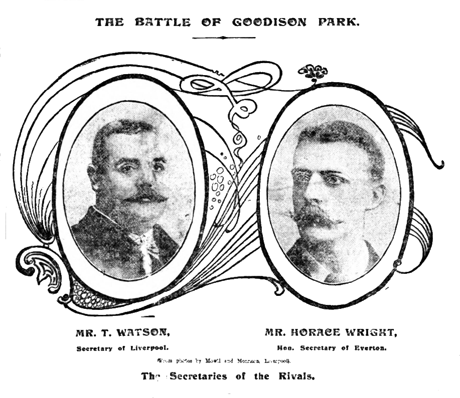 It is unnecessary to emphasize the fact that Everton have for a considerable time been deprived of the services of their regular secretary, owing to a decree of the Football Association. This placed the club in quite a dilemma, and it stands greatly to the credit of Mr. Horace Wright that he undertook the duties temporarily when it was most difficult to obtain the necessary assistance. For some months Mr. Wright, who has been a director of the club for three years, has acted as honorary secretary, and the club is certainly under a deep debt to this gentleman, for he has also the management of large works in Liverpool. The discharge of these manifold duties has left him no leisure, but at least he has the satisfaction of knowing that he has rendered Everton excellent service, and that by his courtesy and promptness he has made hosts of friends. Mr. W.C. Cuff will be able to resume next Wednesday.