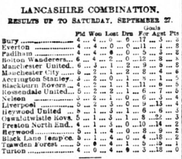 At Nelson. The visitors had rather the better of the opening exchanges, but were opposed by a fine defence. Bowman scored in fifteen minutes, with a good shot, but near the interval Nelson equalised. The game was keenly contested in the second half, and close on time, Dixon scored for Everton, who won by 2 goals to 1. Everton: - Whitley, goal, Wolstenholme, and Crelly, backs Clayton, Russell, and Chadwick (tc), half-backs, Dixon, Monks, Bowman, Makepeace, and Dilly, forwards .