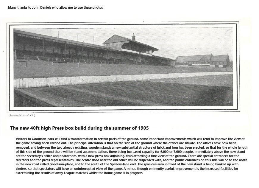 It was not their full team, which Everton placed in field. Tom Booth, the captain, was perforce an absentee in view of the Football Association's decision. Then L.R.Roose, the brilliant goalkeeper has cast in his lot with his old club (Stoke). Sharp was having a rest after an arduous and successful season's cricket, and W.Balmer was on the sick list. Thus we had Scott, in goal, Rankin at outside tight, and R.Balmer at right back. Under the circumstances Everton's pronounced victory is all the more creditable. Still it not gained without a keen struggle. In fact, from the determined manner in which the Middlesbrough men started, it looked as if they meant to gain their first League point of the city. Fully half an hour's play had pass before Everton's attack met with an success. To Young fell the honour of registered the first goal at Goodison-park in the season 1905-06, and within another couple of minutes Settle very cleverly steered the ball past the alert custodian, Williamson. Two goals to nothing at half-time placed the crowd in a rare good humour. But there was more to follow, Settle, who never failed to seize an opportunity, put on a third goal, and then somewhat unexpectedly, Common, after missing several times by merest margin sent in a long shot that quite compared with the best efforts on the Everton side. This, singularly enough, is the first goal, which Middlesbrough have obtained in this city. It looked, too, just about this period as if the visiting side would be rewarded with another goal, but when Hardman raced down and placed the ball beautifully across the goalmouth, with the result that Rankin took full advantage of his chance. Middlesbrough's prospects had vanished. Thus it was that Everton won by four goals to one.
