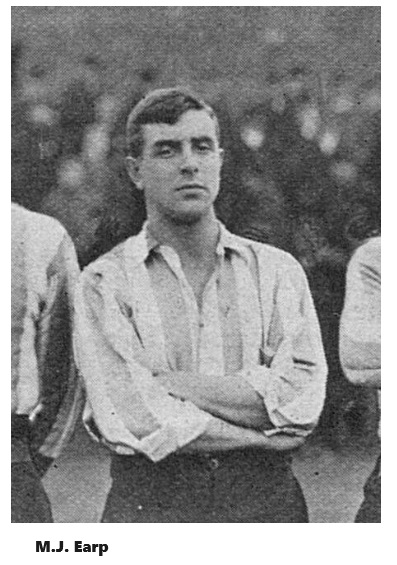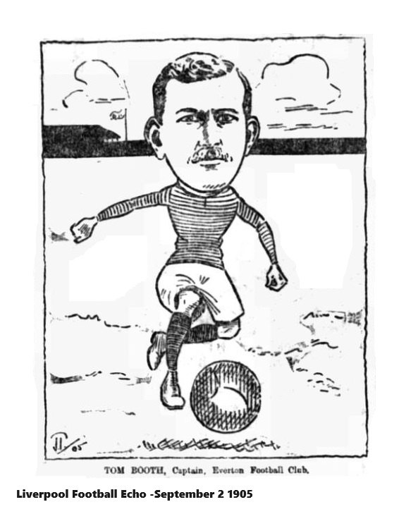 It is an interesting coincidence that the skippers of the Everton and Liverpool clubs are both centre half-backs, and no doubt their respective admirers are justified in claiming that they are the finest exponents of that arduous and responsible position. Tom Booth has captained the Everton team for some years now, and the club has flourished and always occupied honourable positions without reaching premier honours. Although Booth had a large show of bad luck last year, and which need not be enlarged upon, he is still young and vigorous and sure to distinguish himself in the future as much as in the past, when he gained international honours and was the darling of the crowd. Luckily for Everton, their captain’s suspension will terminate at the end of the present month, after which he will reoccupy his old position. It is specially worthy of mention that the gallant Everton captain is of English birth, and first came into prominence as a member of the Blackburn Rovers.