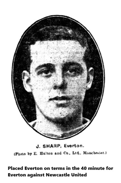 Everton;- Scott, goal; R. Balmer and Crelly, backs; Makepeace, Taylor, and Abbott, half-backs; Sharp, McDermott, Young, Settle, and Hardman, forwards.