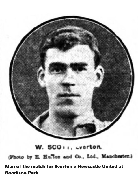 The Everton “boys” have been anxiously asking when Scott, their goalkeeper, intended to join the Benedicts.  They have known the event was imminent and good-humouredly teased Scott about it, but not an inkling would he give them of the time and place. Several of them had vowed determination to witness the ceremony and accord the “leather-handler” a right royal greeting. Well, it will be news to them to learn that Scott was quietly married to Miss Carlisle, of Everton, yesterday at St. Anne’s Church, Aigburth road, in the presence of just a very few friends.