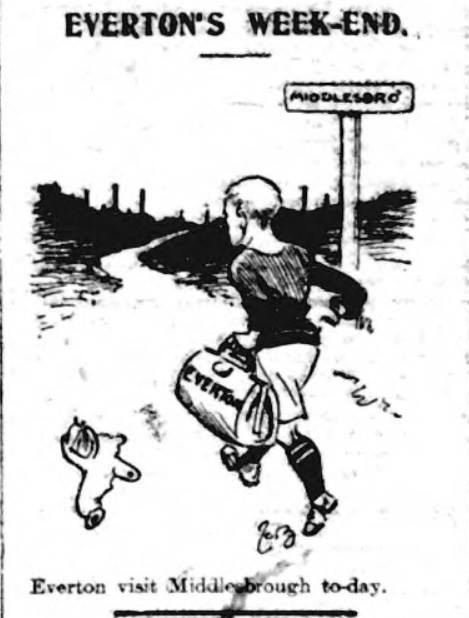 The Everton team travelled to Darlington by the 3- 6 o'clock train this afternoon to be in readiness for their match against Middlesbrough to-morrow. The players who opposed Tottenham made the journey, together with Taylor, Weller, and Gourloy, and it is probable that Taylor and Weller will play instead of Robert Young and Makepeace. The latter sustained an injured knee last evening, whilst Robert also hurt his ankle and foot. Probably the injury prevented him from showing his best form. The chances are that Jack Taylor will play cente half and Weller left half.