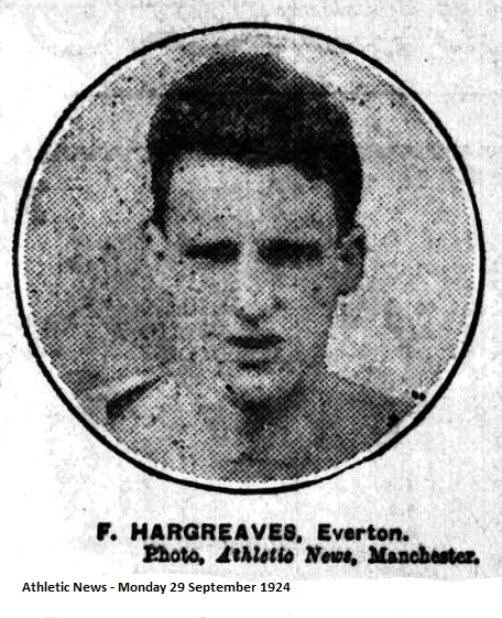 The season seems likely to bring distinction to Frank Hargreaves, young man born at Ashton-under-Lyne and moving later into local football in Manchester. Passing on from Droylsden to Manchester North End, he was introduced to Second Division football by Oldham Athletic, and hat been transferred into the front rank of the game by Everton. Having secured an early opportunity, he has revealed skill of exceptional quality. He owes something to the encouraging support of the Everton half-backs, of course, but more his own gifted footwork and unusual ability at close quarters. Here, it seems, is a rare inside right in the making. What a pity he has not a few more pounds to push into the fray and resist the shoulders of opponents. Still, if he possessed more weight, he might be less agile and deft and dainty —and the delicacy of his swerve and touch has been the real joy in his play.