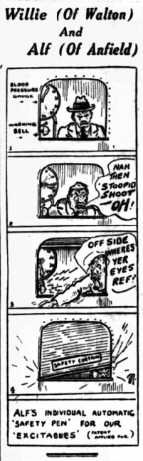 The letters of complaint regarding Everton continue.  I do not see much value in them, and have curbed most of them because the team has been chosen, and many of the letters merely state something that has been amended, by the directors so far as amendments can be carried!  All through this gamut of sport-gauging and player-baiting I feel a sort of need for something in the city that has never before been attempted.  We pride ourselves on our Derby games between Liverpool and Everton- we say these are an object lesson to all other cities who have severe rivalry, and sometimes server sequels on and off the field.  We pride ourselves on our football life in these parts.  I remember the days, twenty odd years ago, when a meeting of Blue and Red led to the fiercest of discussions, and the people did not seem to think it a match if they had not slandered a player or barged into a spectator at their elbow.  I call for a ring of sportsmanship, and today we have meetings that provide argument and discussion ad lib., but not nauseating.  I think the time is ripe for the city to take on a new guise; not a supporters’ club, but rather a sort of “Bee’s Sport Club,” Other teams go around the country once per annum and show their medals, whereas we, a city of football renown, have no such methods I have always claimed that it is only by the broadening process of travel to other football grounds that a men can realize what partisanship means and to what base ends a spectator will look at what he wants to see rather than what is actually occurring.  Travel to other grounds show us what intemperate language a spectator can use; what jaundiced views he can form.  Probably 88 per cent of the spectators at Goodison Park and Liverpool have never seen any other first division ground but their own.